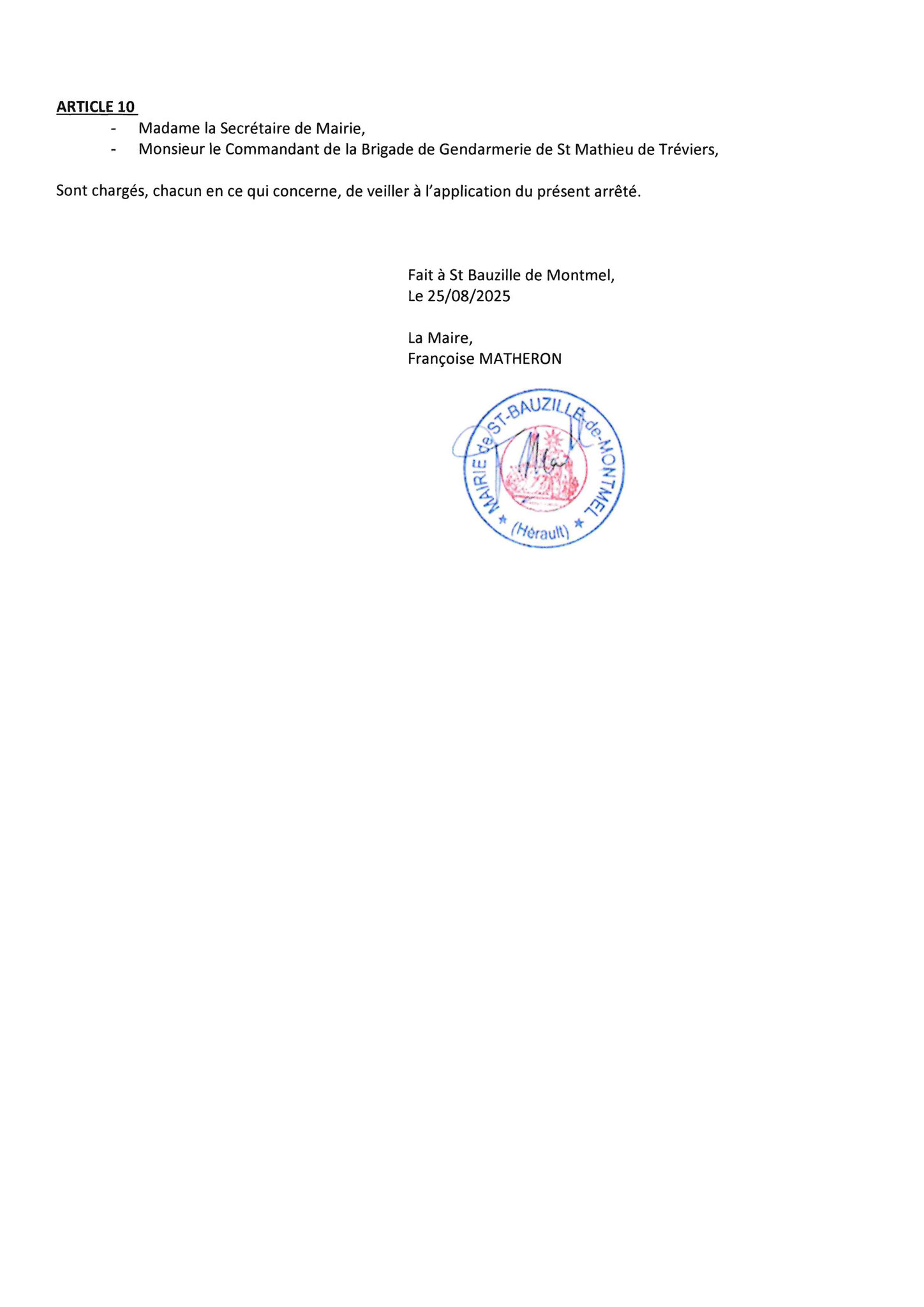 Le présent arrêté est applicable du 25/08/2025 au 02/11/2025.