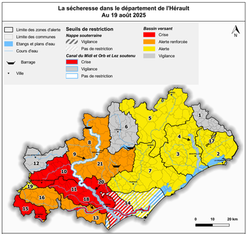 Les particuliers, professionnels (entreprises, exploitations agricoles) et collectivités peuvent connaître, en temps réel, le niveau d’alerte relatif à la ressource en eau et les restrictions d’usage qui s’appliquent à l’échelle d’une commune en utilisant l’outil numérique et cartographique RestrEau 34, mis au point par la DDTM de l’Hérault : https://herault.adm-occitanie.fr/restreau/